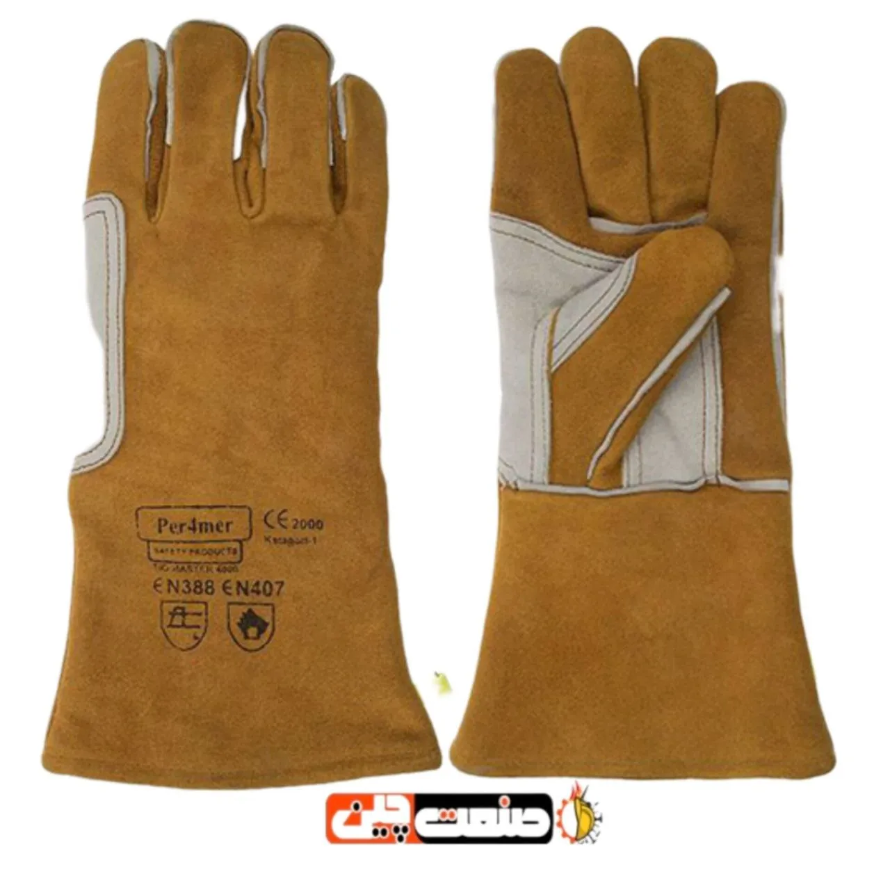 دستکش پرفورمر طرح فرانسه با کف دوبل و نخ نسوز برای حفاظت بهتر در جوشکاری.